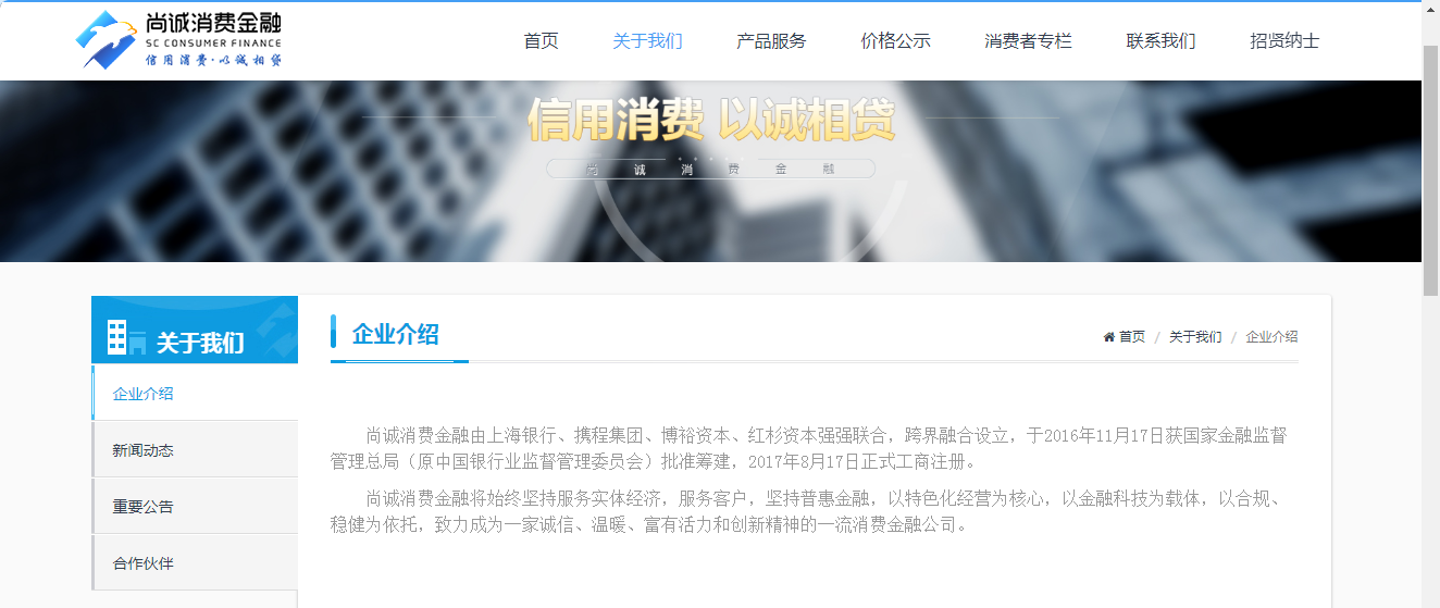 据尚诚消费金融官网,尚诚消费金融由上海银行、携程集团、博裕资本、红杉资本跨界融合设立,于2016年11月17日获国家金融监督管理总局(原中国银行业监督管理委员会)批准筹建,2017年8月17日正式工商注册。(信网记者)