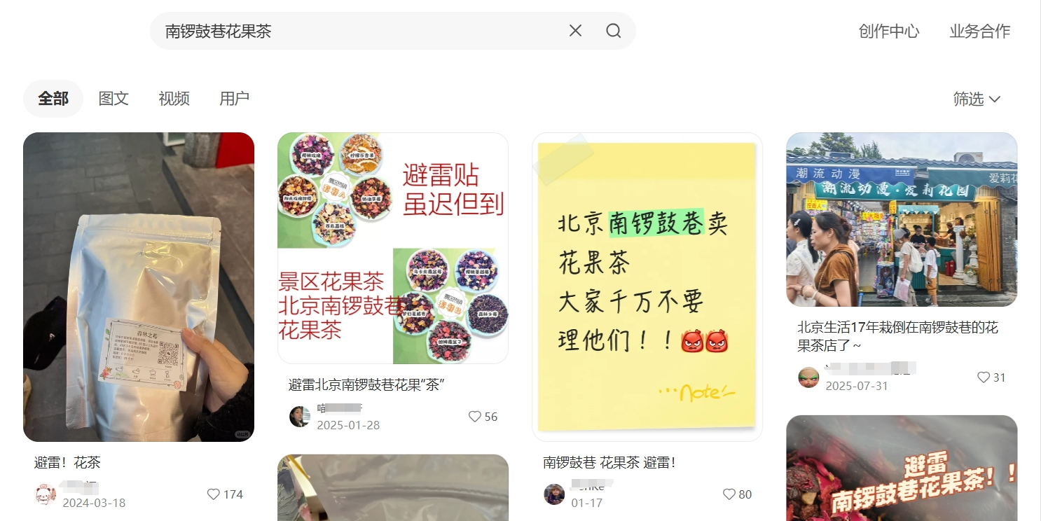 “花果茶刺客” 的现象并非个例。在小红书、微博等社交平台搜索 “南锣鼓巷花果茶”,大量用户分享了类似的 “被坑” 经历。许多消费者反馈,商家在推销时热情邀请试喝,并以 “1.2 元每克” 等模糊单位诱导消费,待结账时才发现总价高昂,且购买前难以通过价签核实单价。