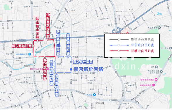 增设站:敦化路徐州路(并622路)、山东路鞍山路(并19路)、鞍山路山东路(并4路)、辽阳西路抚顺路(并4路)。