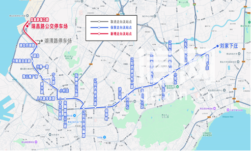主站由湖清路停车场调整为瑞昌路公交停车场,副站为刘家下庄,调整后为:瑞昌路公交停车场—刘家下庄。