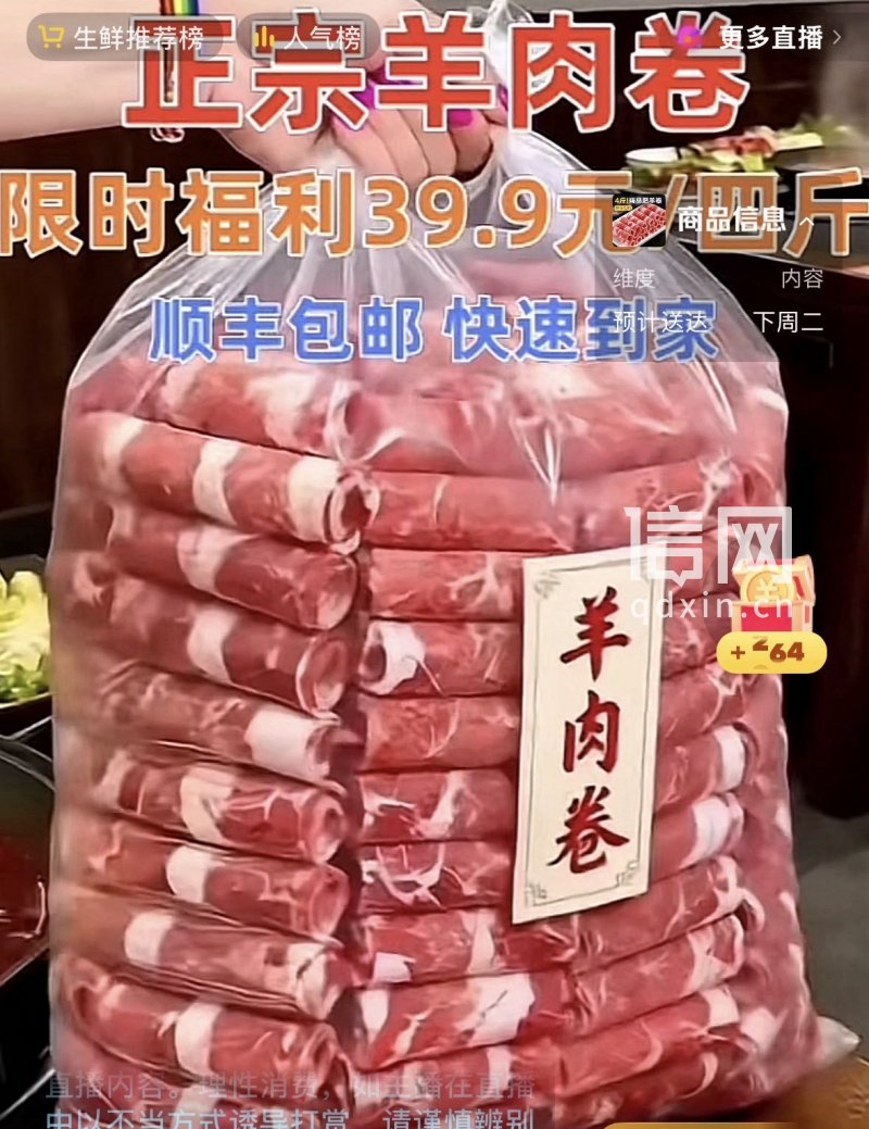 直播间卖“原切羊肉卷”主要成分为鸭肉 “小旭简禾手工坊”被封禁