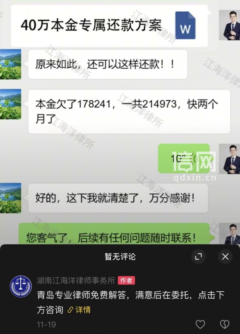 湖南的律所宣传自己是“青岛专业律师” 江海洋律所债务主管随意转发他人身份证隐私
