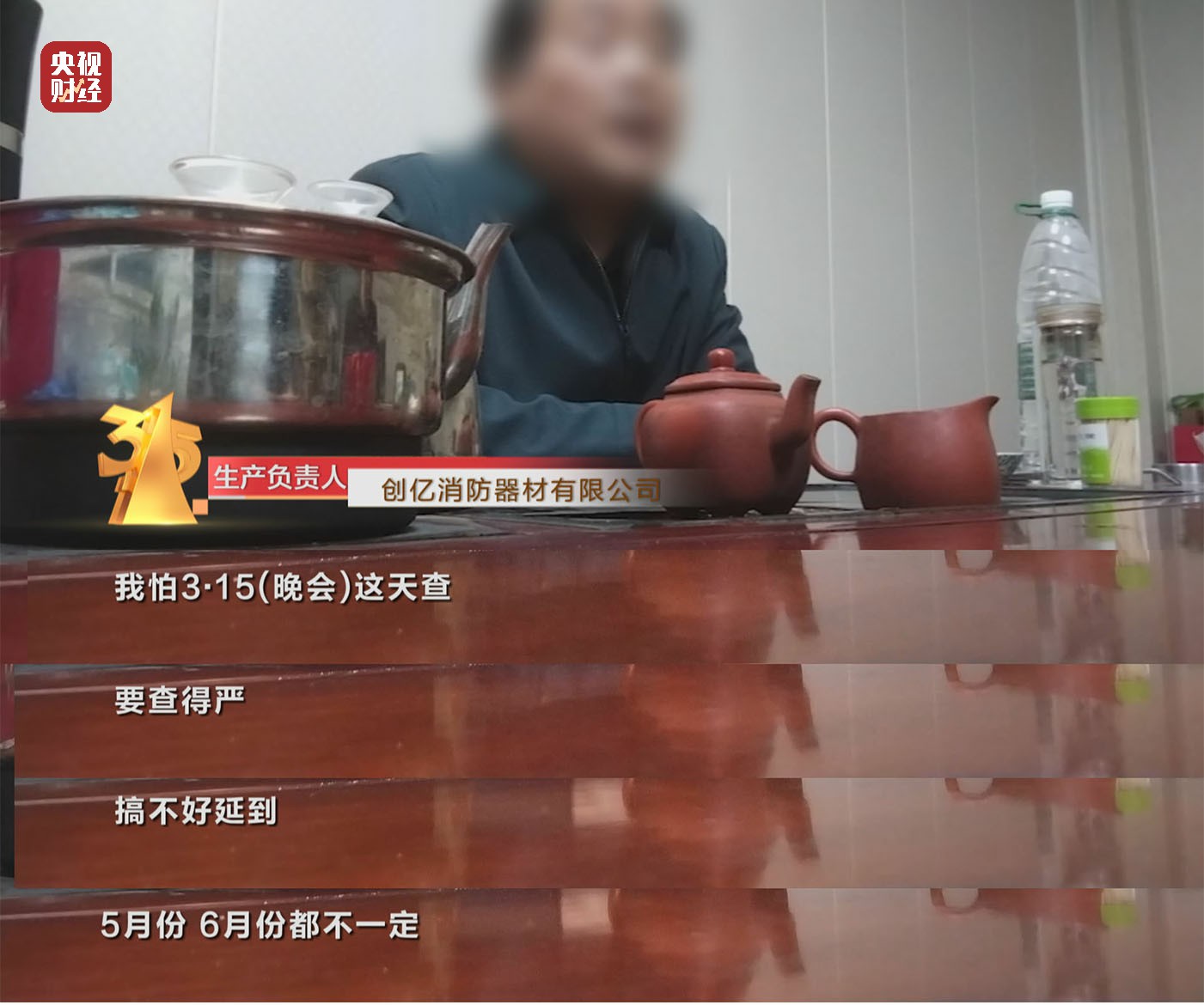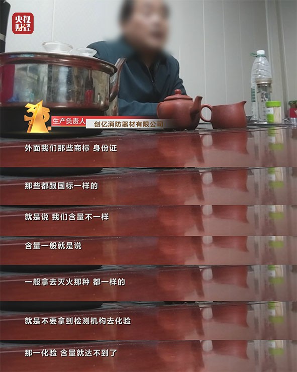 创亿消防器材有限公司 生产负责人:我怕3·15晚会这天查,要查得严。搞不好延到五月份、六月份都不一定。