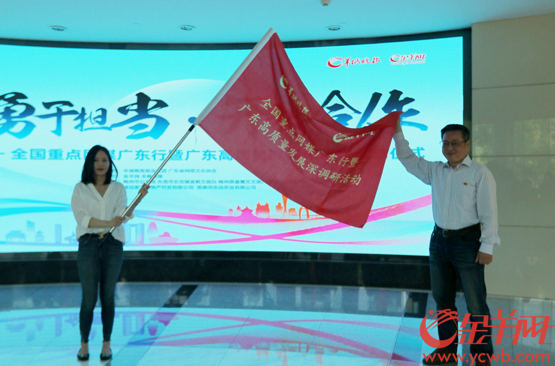 最后,广东省互联网业联合会副会长、网络文化协会负责人、羊城晚报报业集团副社长、副总编辑孙爱群向采访团代表东方网顾爽授旗并宣布活动正式启动。