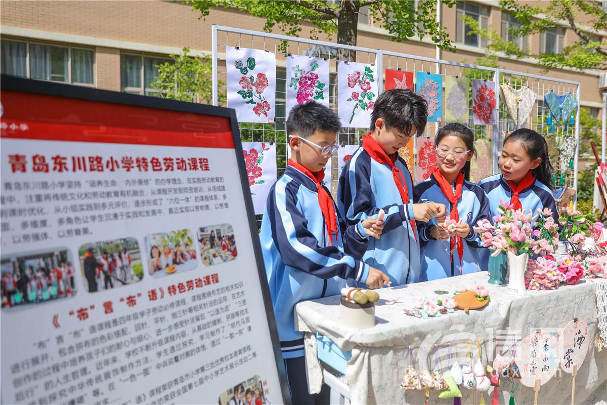 现场还设置了“劳动美”游园会和“劳动美”劳动技能大赛环节。青岛永和路小学、青岛沧海路小学、青岛第六十三中学等12所李沧区劳动教育特色学校展示了“马勺艺术”“中国烹饪”“三星堆”等二十余种劳动教育成果。操场上,600余名学生们进行了“趣味水果拼盘”“沙包乐翻天”“整理与收纳”劳动技能大赛,充分展现了团结互助、锲而不舍的劳动精神。