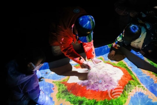 步入展厅后,游客不仅要“亲自”唤醒那些藏在树林里、山海间受到惊吓的神兽们,还要用“神奇的沙包”帮助火神祝融打败水神共工的臣属——凶恶的相繇……
