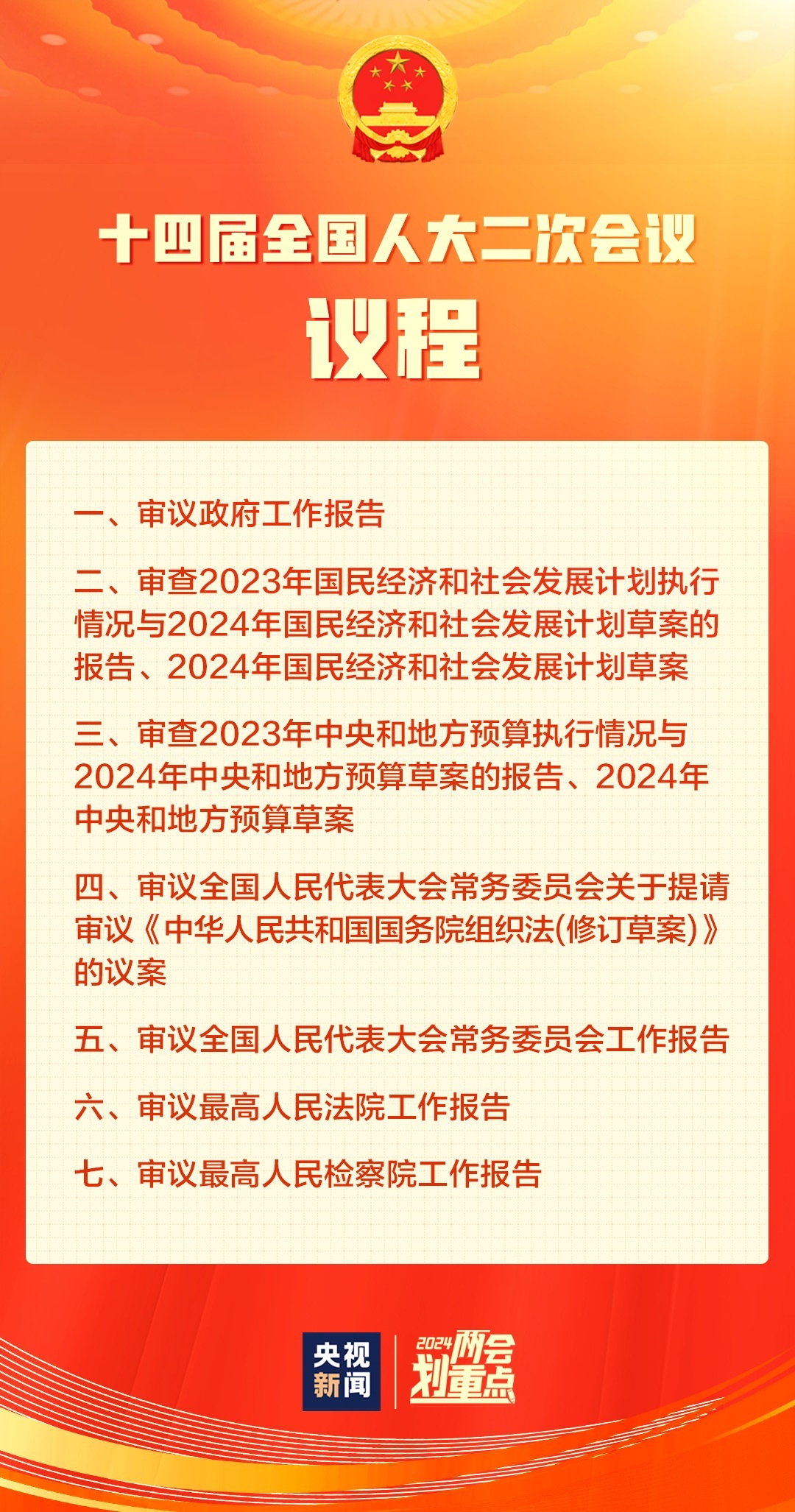 十四届全国人大二次会议4日上午举行预备会议,通过了大会议程。详情: