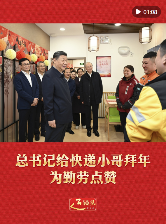 这是总书记又一次于春节前夕看望快递小哥。2019年春节前夕,总书记在北京考察时,就曾给快递小哥拜年,称他们为“勤劳的小蜜蜂”。