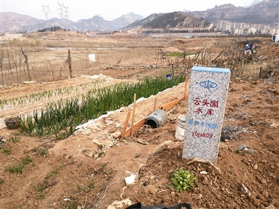 记者在水库库底的一块菜地前看到一块写有“云头崮水库管理范围线”的界碑,而在管理范围线内,村民种植的大葱已有30厘米高,蒜苗也高出地面一大截。“水库的水位不高,一出现干涸的地方,就有村民在此平整开荒。”一位在水库垂钓的市民说,“水面缩小到哪里,开荒的地块往往就延伸到哪里。”