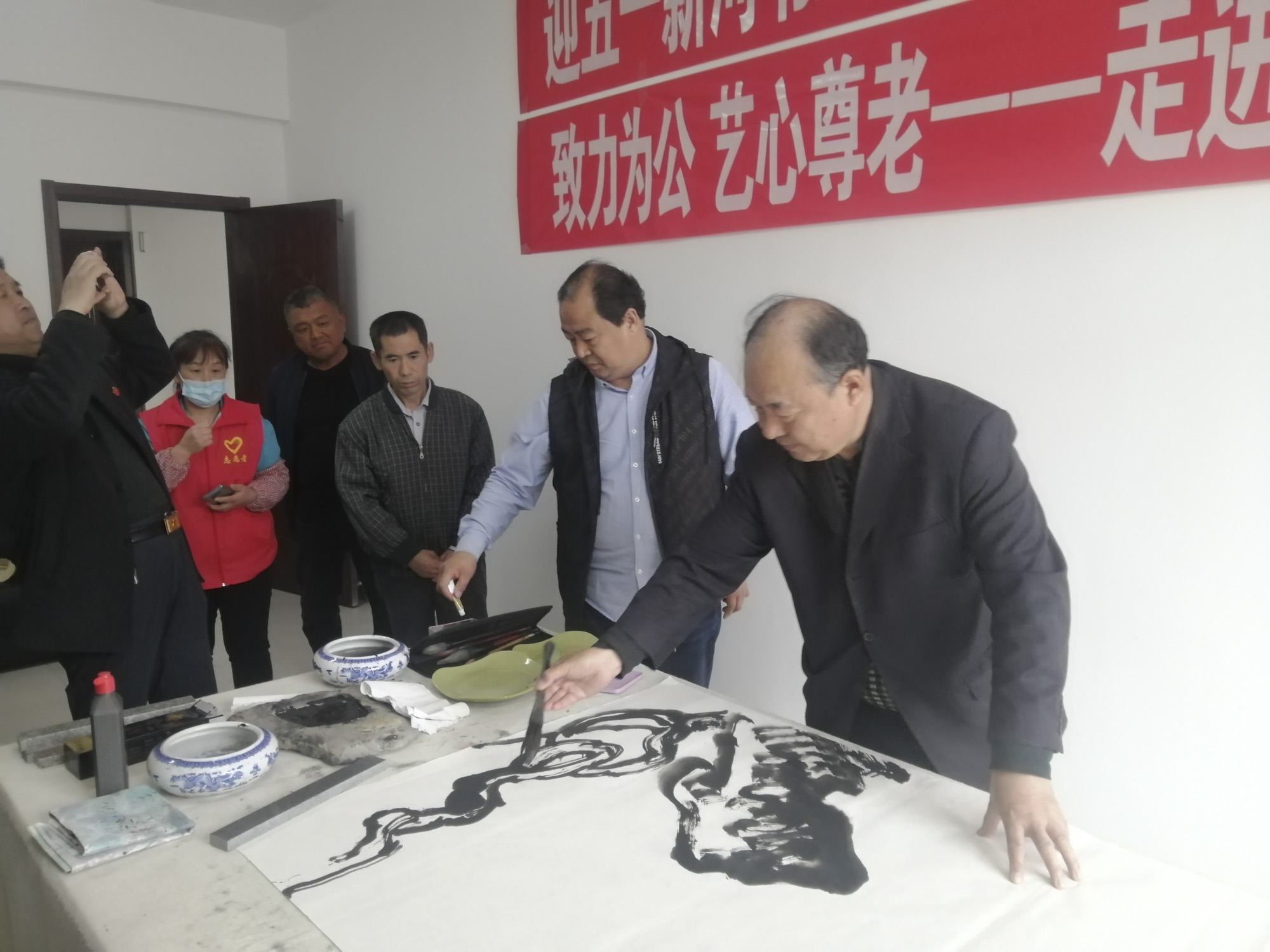 信网4月26日讯 今日,“致力为公·艺心尊老”公益书画笔会,在平度市新河镇福寿源居家养老服务中心举行,来自青岛致公书画院的书画名家为侨乡老人送上美好的祝福。青岛致公书画院常务理事、中国美术家协会员朱文松,国家书画院研究员、青岛致公书画院黄岛分院院长张学正,受致公党青岛市委会和青岛致公书画院委托参加活动。