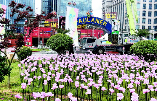 上海纺织时尚产业发展有限公司的工作人员介绍,北广场选择定位是“缤纷彩虹、多元化、国际化,啤酒文化+商务主题”,中广场选择定位是“创新蓝海,亲民化、娱乐化、大众文化+亲子主题”,南广场选择定位是“旗帜鲜红、市民化、活力化、红色文化等主题”,在节庆主视觉上采用彩虹色作为核心色调,象征着色彩纷呈的青岛啤酒节包罗万象。