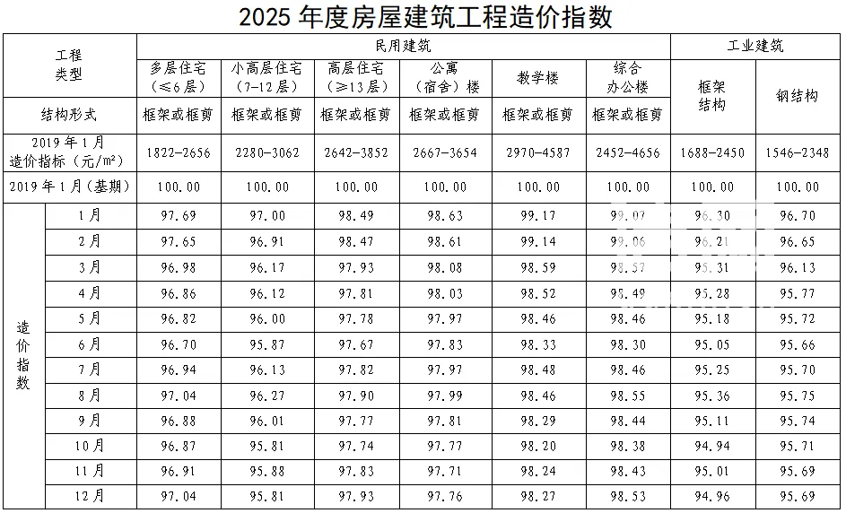 信网1月28日讯 近日,2025年度青岛市建设工程造价指数正式发布。数据显示,房屋建筑工程造价指数普遍低于基期水平,市政工程造价指数虽仍高于基期,但下半年呈小幅回落。