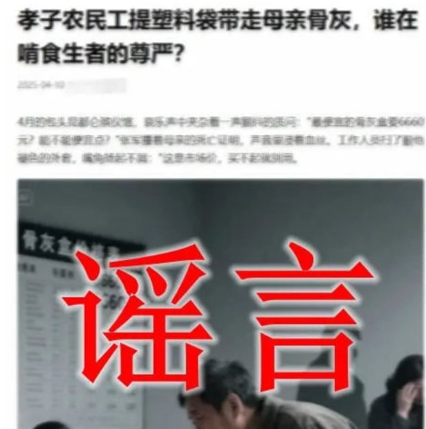农民工提塑料袋带走母亲骨灰?系AI捏造的谣言