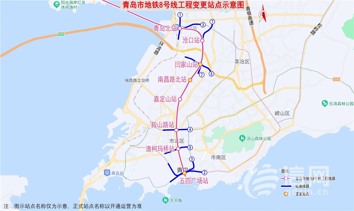 青岛地铁8号线南段规划方案拟变更 五四广场等三站调整