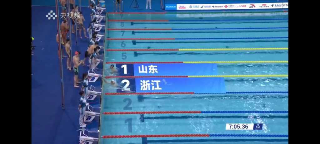 张展硕最后一棒反超汪顺 山东队获十五运会男子4×200米自由泳接力金牌