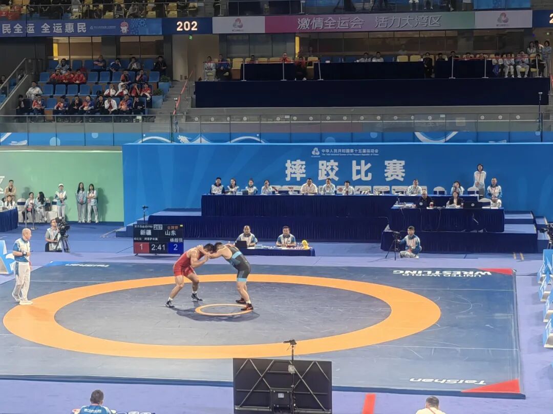 11月12日,第十五届全国运动会国际式摔跤项目决赛在广东清远体育中心继续进行,青岛市体育运动学校培养输送的运动员杨超强荣获男子自由式摔跤97公斤级冠军。