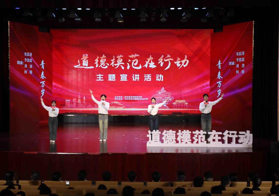 10月31日,青岛中学大剧场内,山东大学大学生饱含激情的朗诵《青春万岁》响彻全场,由青岛市委宣传部主办、城阳区委宣传部承办的“道德模范在行动”青春——奋斗・榜样・报国主题宣讲就此拉开帷幕。