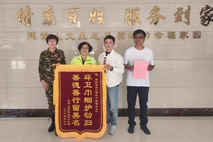 青岛姑娘拾金不昧暖岛城 失主送旗致谢传温情
