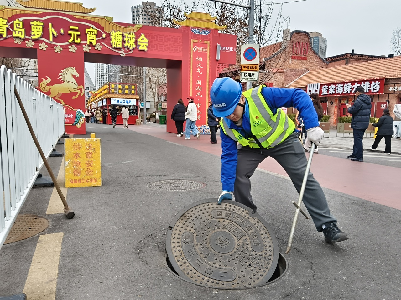 为确保糖球会期间会场及周边区域供水安全稳定,青岛水务海润自来水集团南部分公司组织了一支由“00后”为主力军的青年突击队,主动靠前服务,开展供水设施专项巡检与便民服务活动。他们身着工装、手持设备,在人流密集的会场内外来回奔忙,成为节日里一道别样的“青春风景线”。