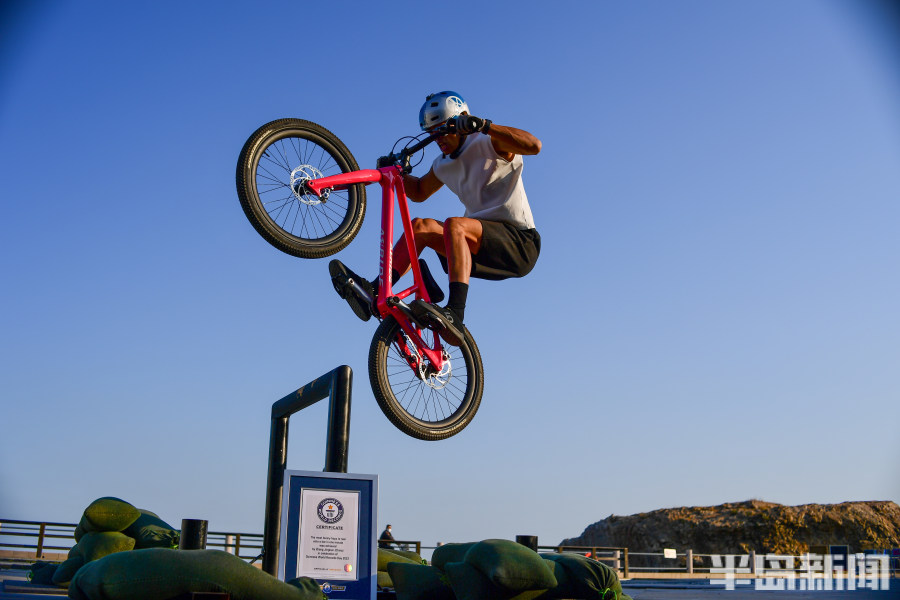 作为2022年吉尼斯世界纪录日的代表人物,11月10日,来自山东青岛的张京坤用自己擅长的自行车街攀技巧成功挑战“1 分钟做最多次后轮定杆海豚跳”,以14次上下跳跃刷新了这项纪录,向全球挑战者们展示了中国街攀自行车的“新高度”。