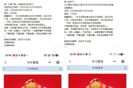 据了解,这种购物卡在购买时是不记名的,持卡者可以选择凭实体卡到店购物时使用,也可以绑定电子会员卡用于线上消费。虽然电子会员卡是用手机号注册,但出于保护消费者个人信息的需要,沃尔玛客服表示无法直接提供绑定了李先生这两张购物卡的手机号。