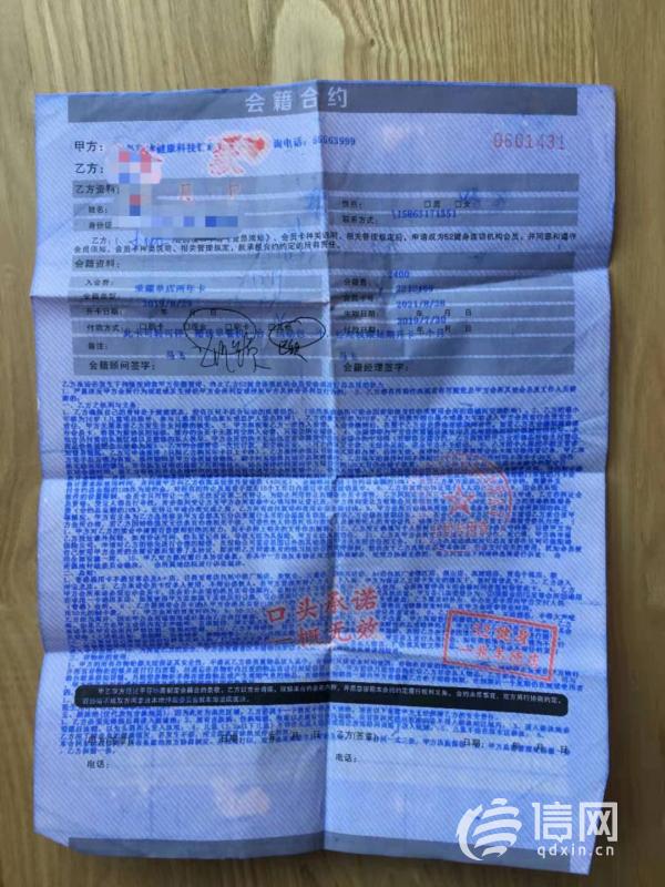 信网12月14日讯 曾经风靡岛城的52健身突然沉寂,关闭了多家店,CBD万达店也在今年年初宣布装修后再未开过。对于该店的会员王女士而言,如今面临着会员卡不知该去哪里退卡,这件事情让她伤透了脑筋。而据信网了解,给王女士开收款收据的青岛魔体健康科技管理有限公司目前已经注销,而实际收款方青岛李沧区颜杰伍贰游泳健身俱乐部目前仍在营业,但未能与其取得联系,信网尝试联系该公司法人代表高松控制的另外一家青岛吾爱贰体育健身有限公司,但该公司工作人员称不是52健身,并未置评。