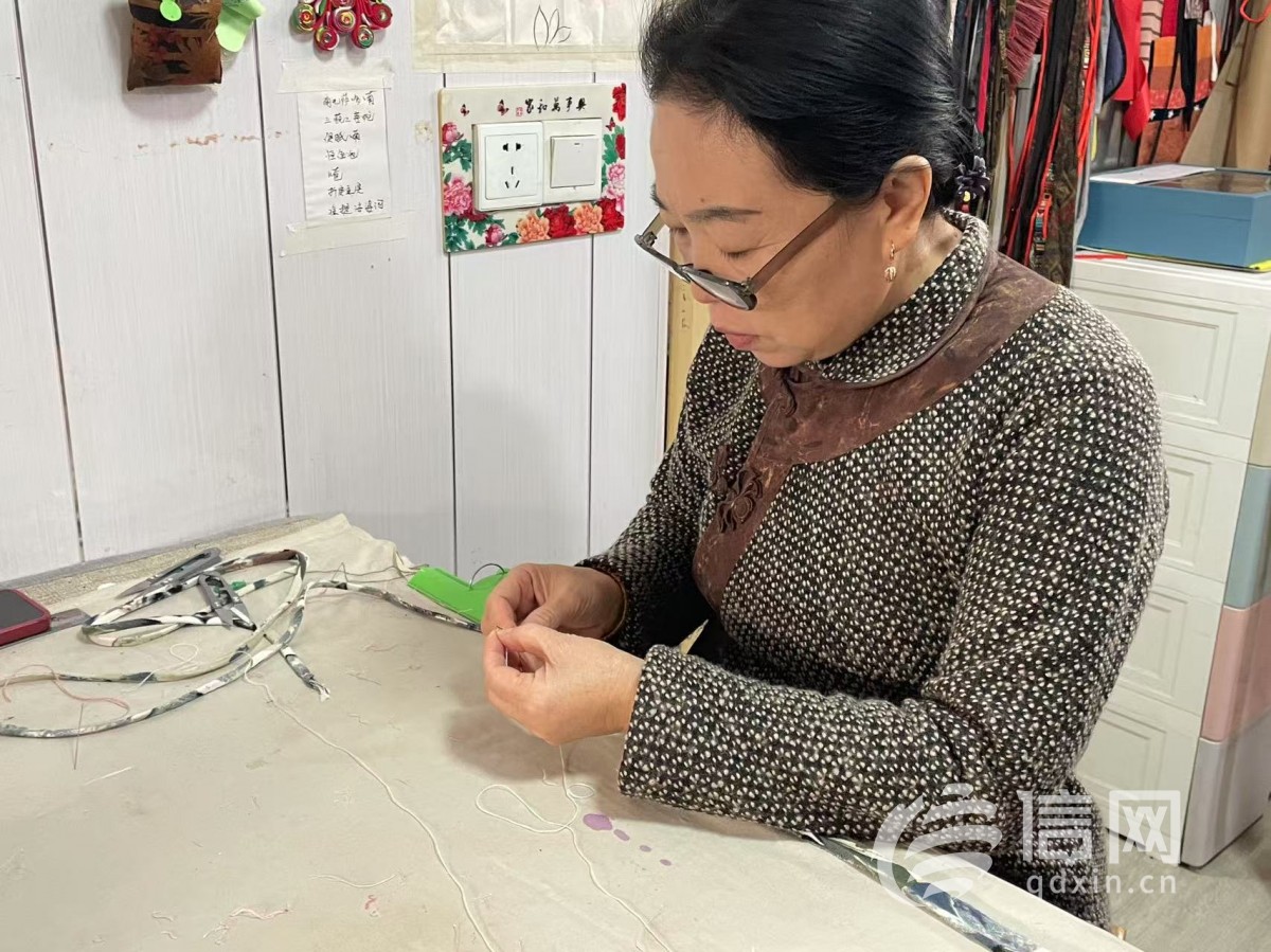 林瑞先与盘扣的初遇,是在儿时。据她介绍,老林家的盘扣技艺已经有一百多年的历史,从她祖奶奶那个时代就开始流传下来。7岁时,她经常看见祖母在家里制作盘扣,一针一线,一丝不苟,那份专注与执着深深地刻在了她的心里。林瑞先介绍道,制作盘扣看似简单,实则工序繁杂,从选料、裁剪、编织到成型,每一个步骤都需要纯手工完成,容不得半点马虎。“哪怕是一个小小的结,都要编得紧实、均匀,只有这样,盘扣才好看、耐用。”林瑞先一边熟练地编织着,一边说道。