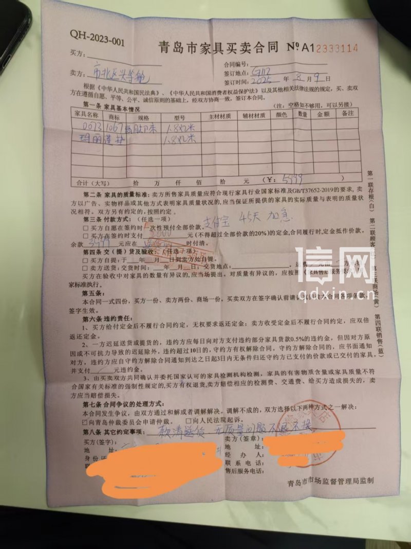 9月24日,合同约定的45日交货期限届满,头等舱家具店仍未送货,又一次口头承诺“28日能送到”。此时,李先生已在其他店重新订购了家具,他再次提出解约、退款,又被家具店拒绝。9月26日,家具店退回李先生支付的3999元“尾款”,但对于定金和违约金未作处理。9月28日,家具店联系李先生送货,被李先生拒绝。10月27日,迟迟未收到2000元定金的李先生将家具店诉至青岛市市北区人民法院,要求解除合同、退还定金,并支付违约金。