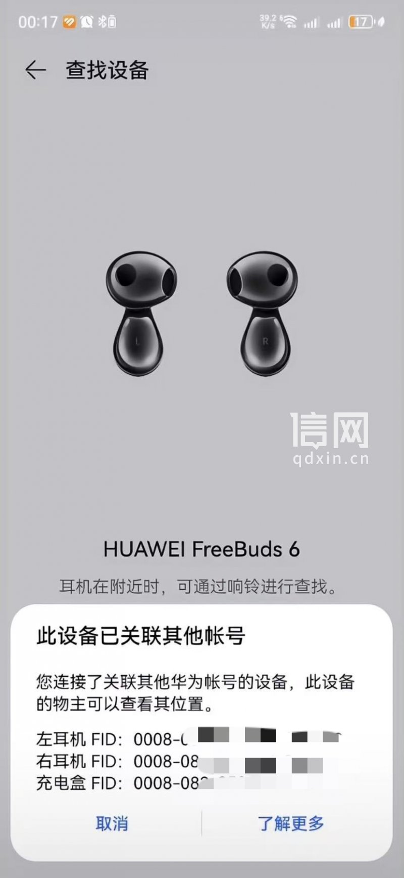 次日签收后,彭先生发现耳机存在轻微划痕,但觉得属于不影响使用的小瑕疵,也没过多计较。可开机后,却发现耳机一项“查找设备”功能不能正常使用,且弹出“已关联其他账号”的异常提示,“此设备的物主可以查看其位置”。彭先生点击后发现,该耳机已绑定至一个陌生账号,绑定设备型号为华为Mate 70 Pro手机,不是自己使用的华为Mate 60手机。