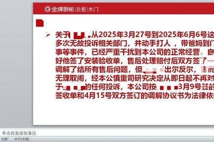 顾客发“避雷帖”吐槽金牌整家定制问题多 商家做31页PPT反驳并将消费者告上法庭